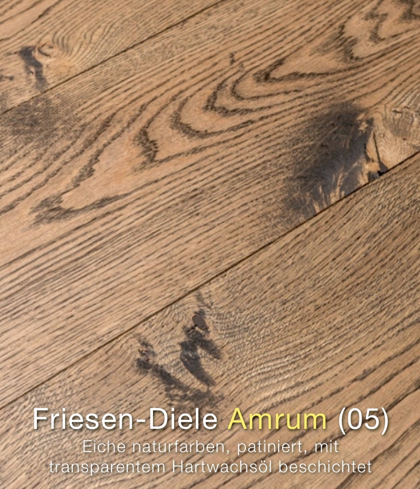Viele Designer-Dielen haben das Problem, daß sie sich nach einigen Jahren durch Verunreinigungen, Sonnenlicht oder Feuchtigkeit in ihrer Optik stark verändern, da Substanzen in die offenporige Oberfläche eindringen und Chemische Prozesse auslösen. Die Friesen-Dielen sind dagegen weitestgehend resistent, denn jede Diele wird bis zu 20 mal mit Hartwachsöl behandelt und poliert! Dadurch wird die Oberfläche stark verdichtet und gehärtet, was wiederum zu einer extremen Schmutzabweisung und zu einer sehr geringen Abnutzung der Oberfläche führt. Die Diele hat durch das Polieren sozusagen eine Patina entwickelt, die unter normalen Bedingungen erst nach vielen Jahrzehnten entstehen würde.