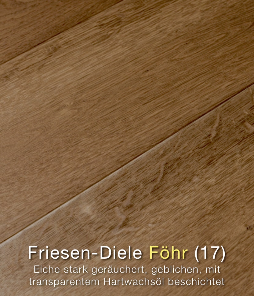 Jeder Friesen-Dielen-Boden ist eine Sonderanfertigung, die auf Kundenwunsch erfolgt. Als Basis für die Friesen-Dielen dienen unsere unbehandelten Eichen-Dielen in Natur-, Rustikal- oder Country-Sortierung (hier klicken).